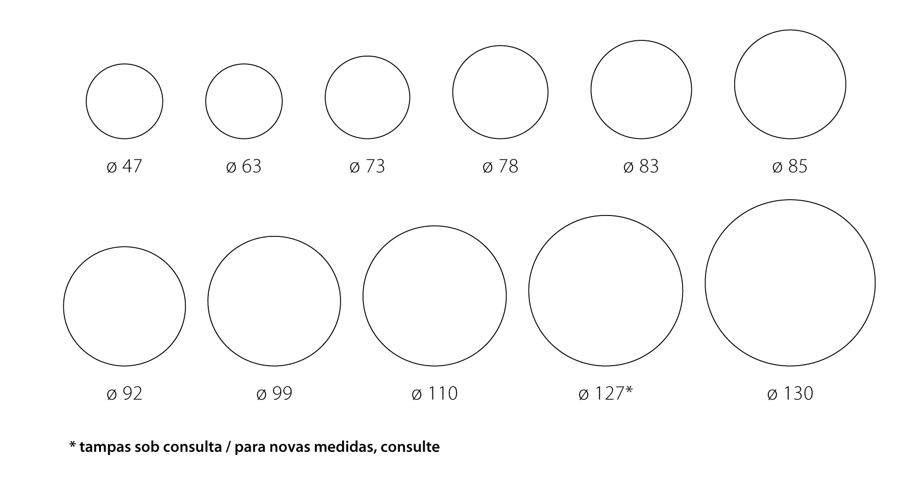 Dispomos de uma vasta gama tampas, para diferentes tipos de aplicação e com diferentes formatos.